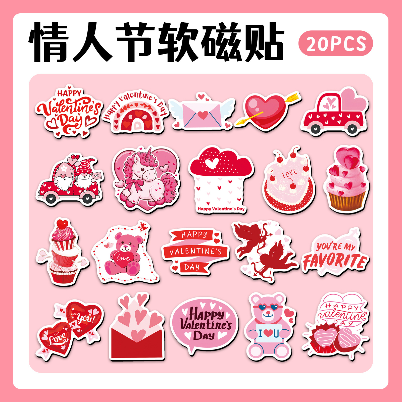 20片卡通情人节软磁冰箱贴跨境热卖粉色节日爱心装饰磁性磁吸贴월 판매량 1개재구매율 0%1,776원 * 수입시 예상 단가6.64元5.92元