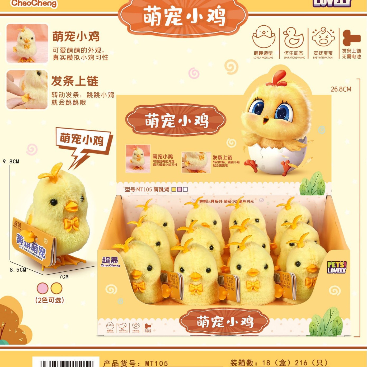 超晟MT105发条上链萌宠小鸡毛绒儿童上链鸡热卖怀旧益智玩具批发월 판매량 27개재구매율 0%1,590원 * 수입시 예상 단가5.30元