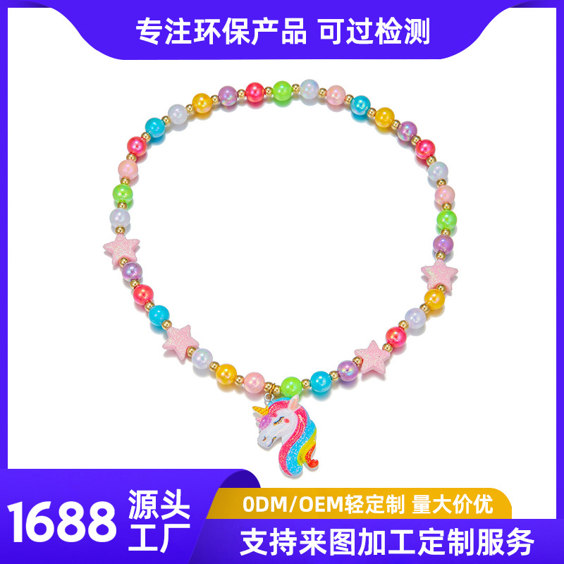 跨境热卖 卡通彩虹独角兽树脂配件星星彩色珠子串珠弹力儿童项链월 판매량 4개재구매율 0%1,056원 * 수입시 예상 단가3.70元3.52元