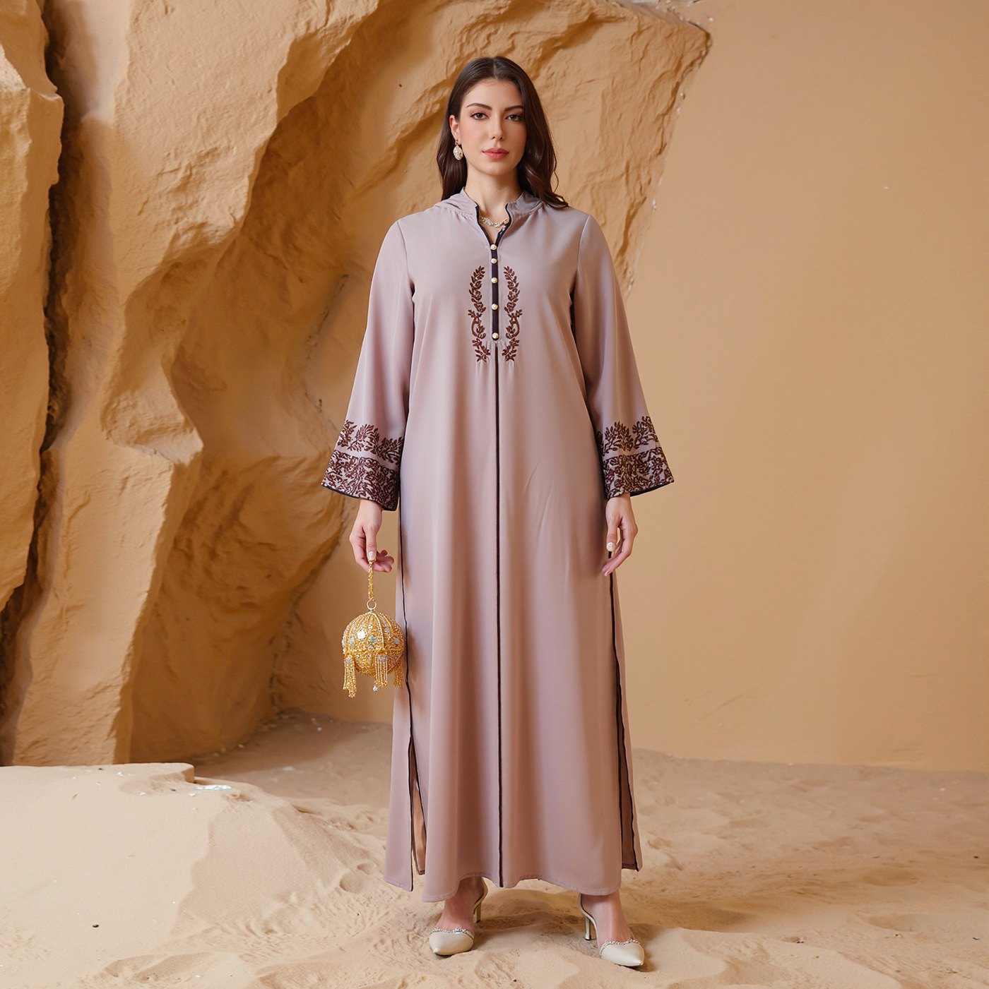 跨境热卖质优雅烫钻钉珠穆斯林开衫土耳其迪拜时尚带口袋长裙1402월 판매량 11개재구매율 0%29,400원 * 수입시 예상 단가98.00元