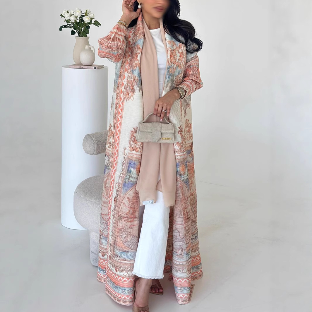 外贸中东爆款三宅褶皱春款长袍2025长袖大衣外套印花女时尚Abaya월 판매량 13개재구매율 50%38,475원 * 수입시 예상 단가135.00元128.25元