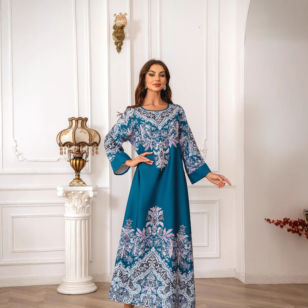 跨境 亚马逊热卖艺术幻彩印花中东阿拉伯阿巴亚长袍连衣裙abaya월 판매량 20개재구매율 0%21,900원 * 수입시 예상 단가73.00元