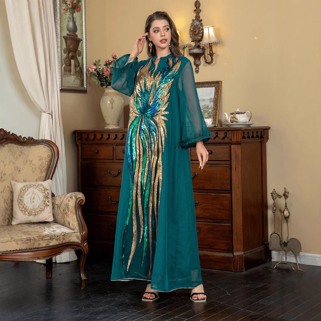 AB186 跨境外贸女装爆款加色连衣裙窗纱大袍阿拉伯珠片绣花服饰월 판매량 186개재구매율 0%34,500원 * 수입시 예상 단가115.00元