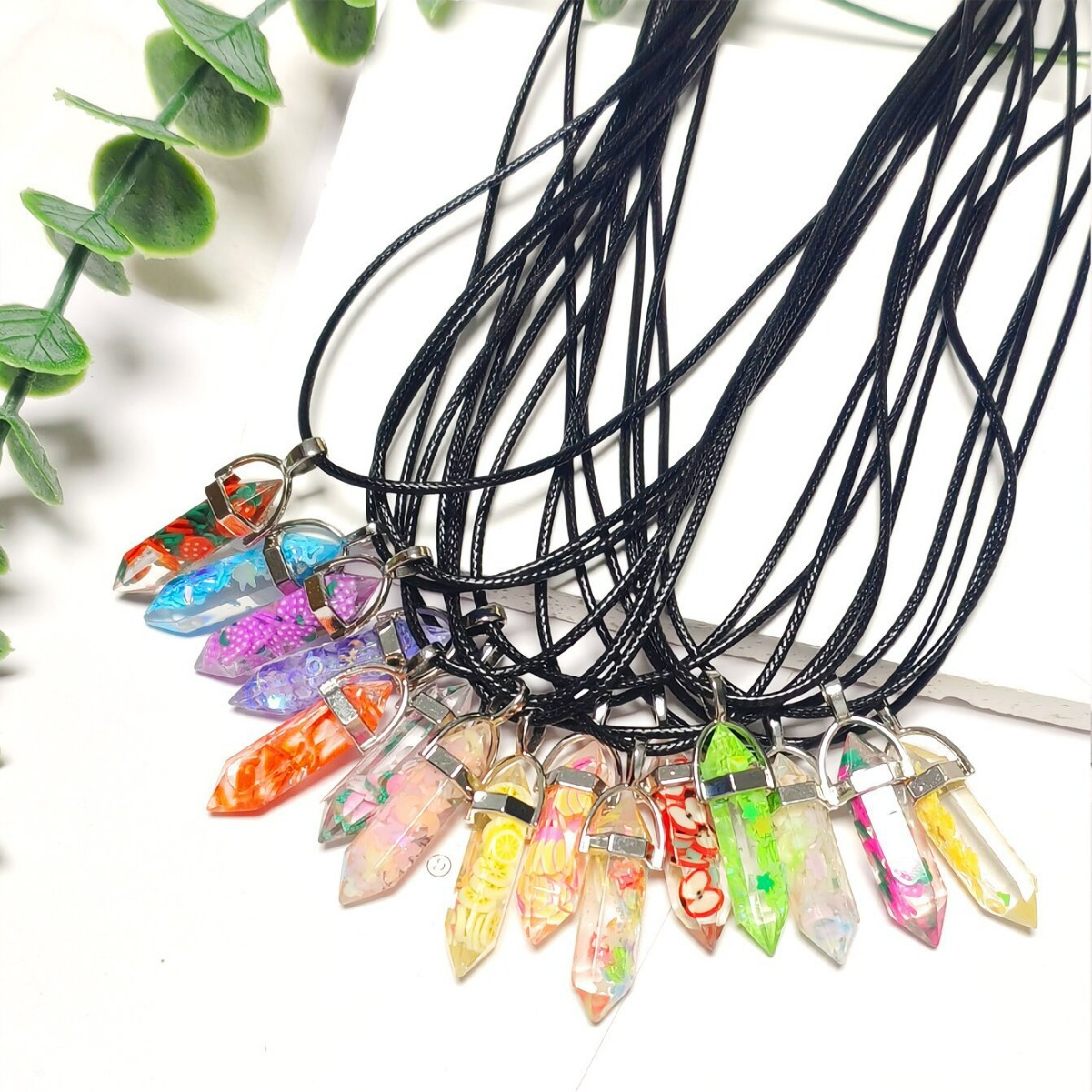 跨境热卖时尚六角柱子弹头吊坠水晶柱毛衣链吊坠皮绳链水晶多色월 판매량 130개재구매율 0%420원 * 수입시 예상 단가1.40元