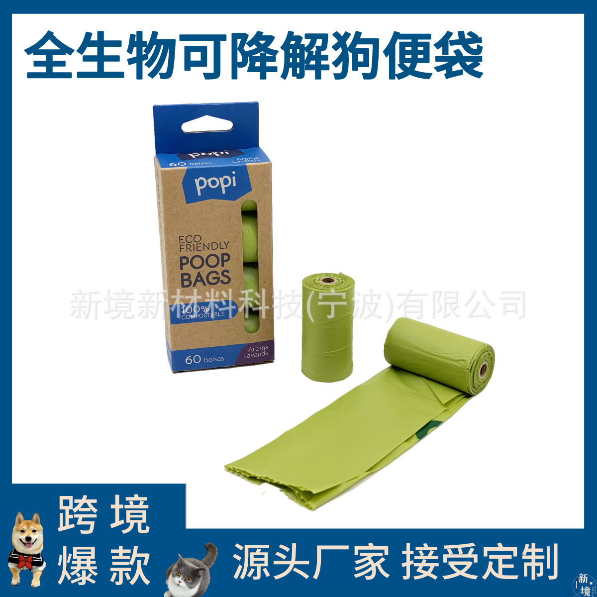 新包装玉米淀粉+PLA全降解宠物垃圾袋可堆肥便便袋亚马逊爆款定制월 판매량 0개재구매율 0%543원 * 수입시 예상 단가1.81元