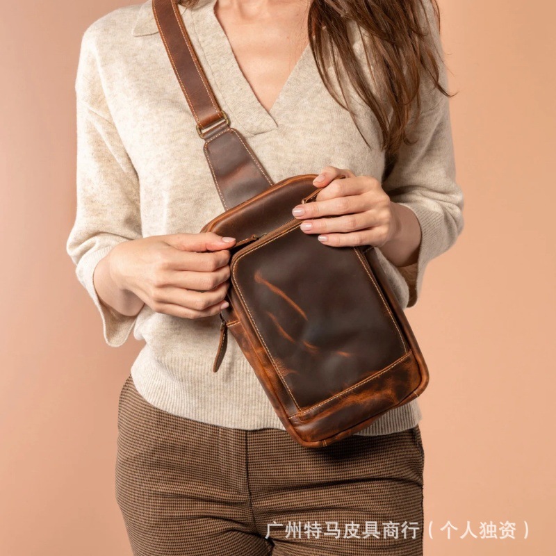 跨境爆款复古疯马皮男女斜跨胸包 真皮休闲高级感多功能运动腰包월 판매량 0개재구매율 0%22,500원 * 수입시 예상 단가75.00元