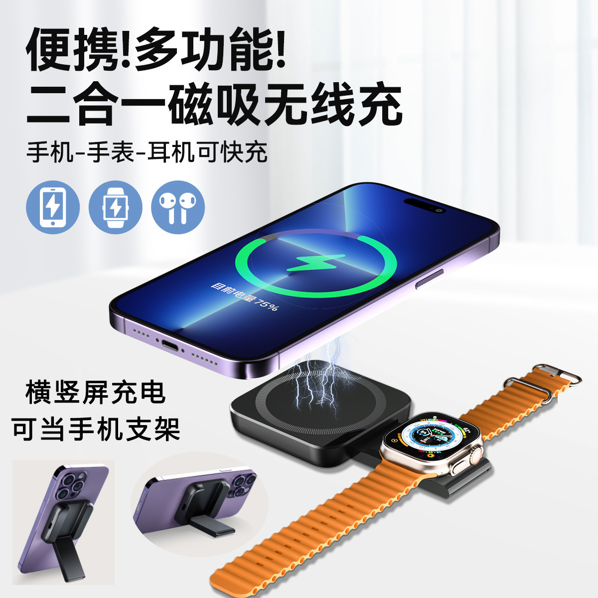 2025跨境爆款桌面三合一无线充电器迷你折叠磁吸手机支架充电快充월 판매량 49개재구매율 0%14,400원 * 수입시 예상 단가48.00元