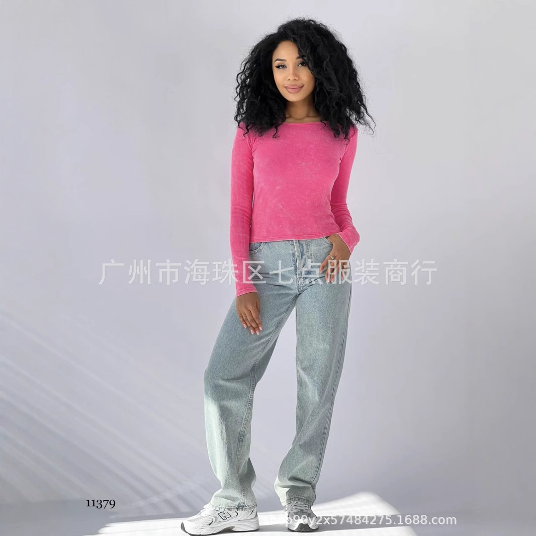 2024秋季新款欧美亚马逊跨境爆款女装纯色圆领修身百搭褶皱打底衫월 판매량 0개재구매율 0%19,500원 * 수입시 예상 단가65.00元
