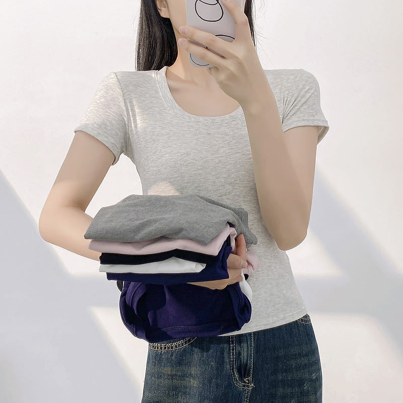2025爆款短袖T恤女短款紧身减领小衫夏季时尚短袖白色打底衫上衣월 판매량 12개재구매율 0%5,070원 * 수입시 예상 단가16.90元