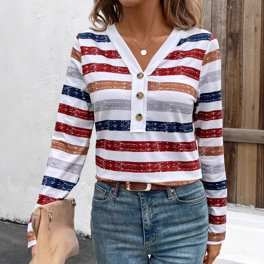 现货跨境欧美亚马逊爆款条纹打底衫V领长袖纽扣休闲百搭T恤월 판매량 0개재구매율 0%6,600원 * 수입시 예상 단가22.00元