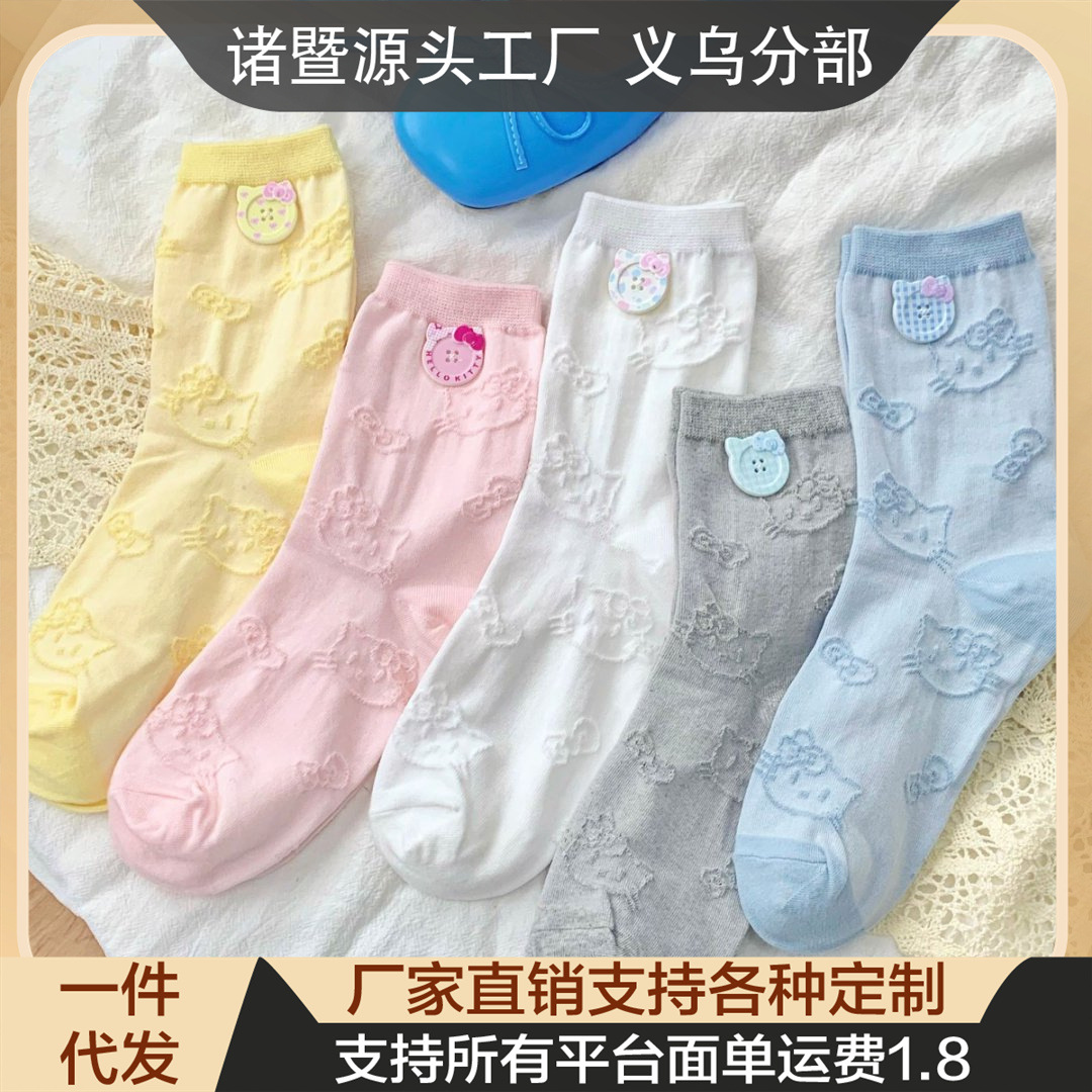 夏季薄款KT猫纽扣袜新款爆款可爱卡通浮雕袜韩版少女ins甜中筒袜월 판매량 67개재구매율 0%537원 * 수입시 예상 단가1.79元
