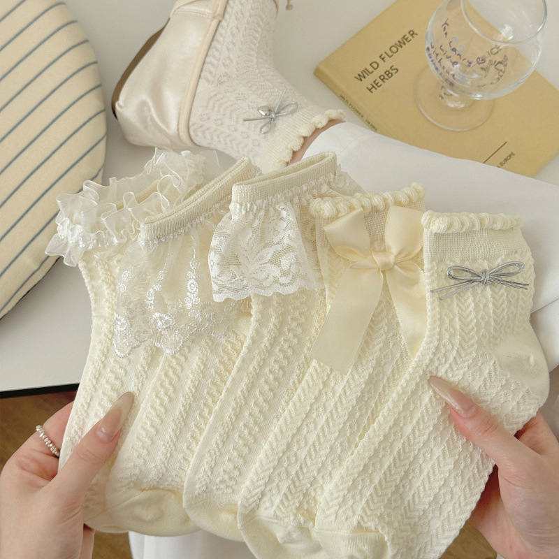 春季新款爆款ins风潮韩系女袜甜美蝴蝶结花边袜口百搭镂空中筒袜월 판매량 110개재구매율 0%1,380원 * 수입시 예상 단가4.60元