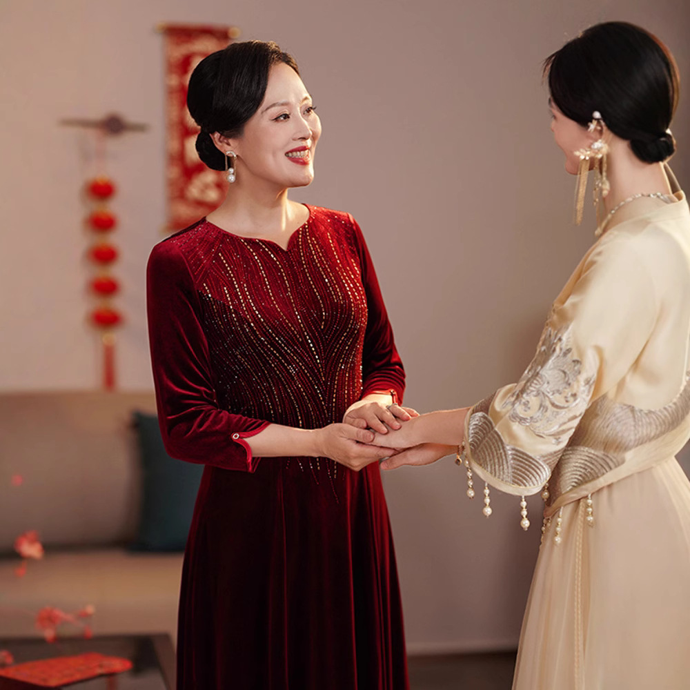 喜婆婆敬酒服旗袍结婚妈妈装洋气高腰显瘦中长款过膝秋V领爆款월 판매량 4개재구매율 0%120,000원 * 수입시 예상 단가400.00元