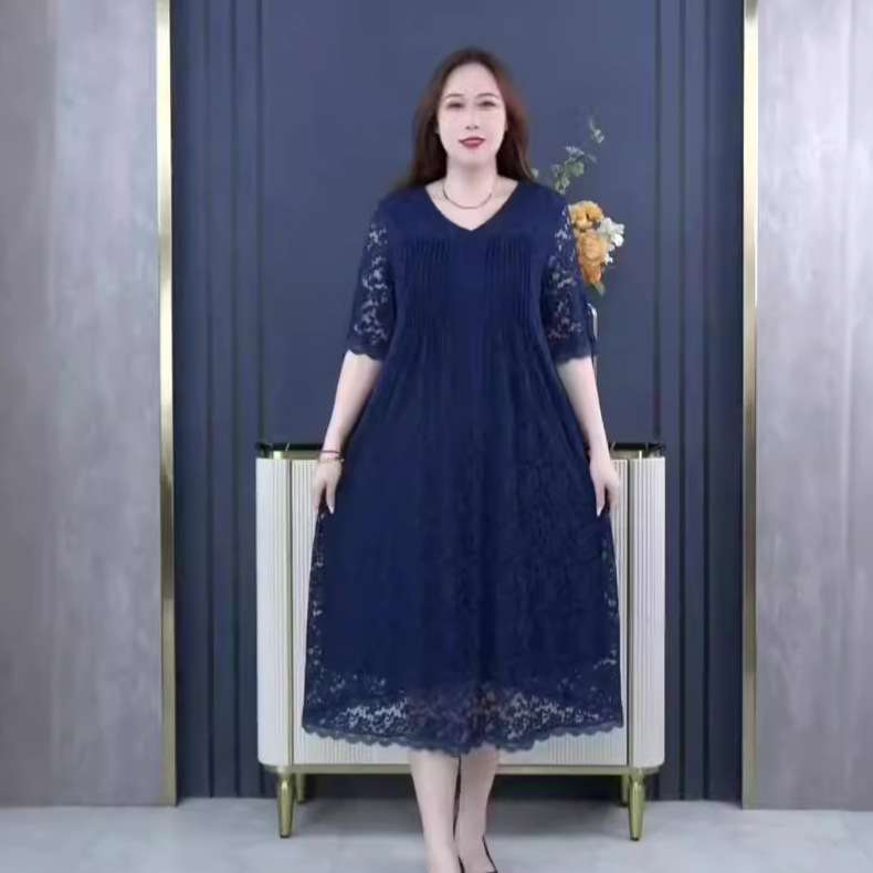 2024春夏网红直播穿爆款宽松高弹性加大码胖MM蕾丝短袖连衣裙女装월 판매량 3개재구매율 0%29,700원 * 수입시 예상 단가99.00元