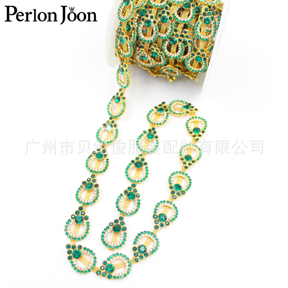 外贸热卖金色码链翡翠绿玻璃水钻装饰金属镶钻链礼服鞋子服装辅料월 판매량 4개재구매율 0%12,300원 * 수입시 예상 단가41.00元