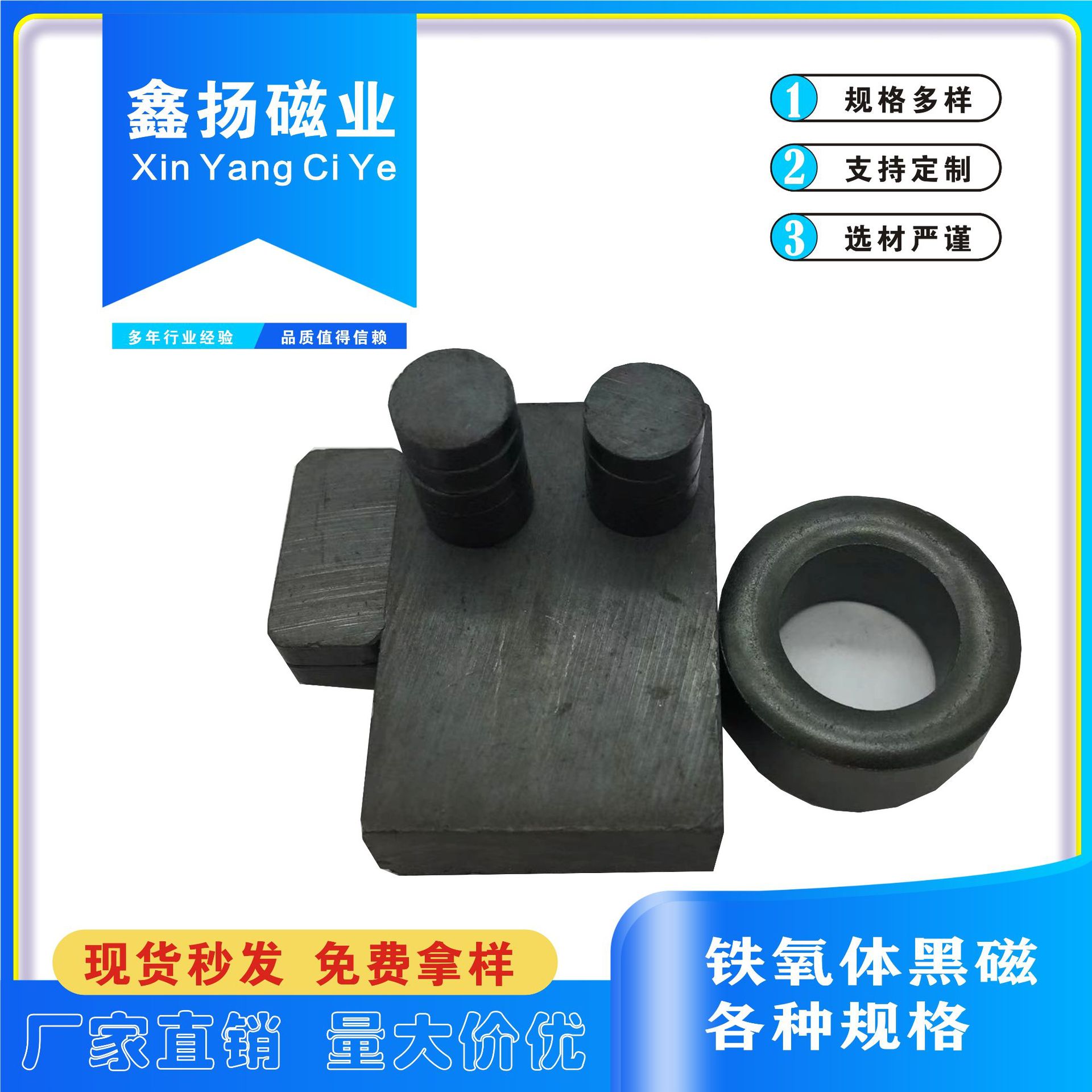 厂家现货热卖铁氧普磁喇叭吸铁石 圆形环形方形永磁王磁铁等各规월 판매량 0개재구매율 0%3원 * 수입시 예상 단가0.01元