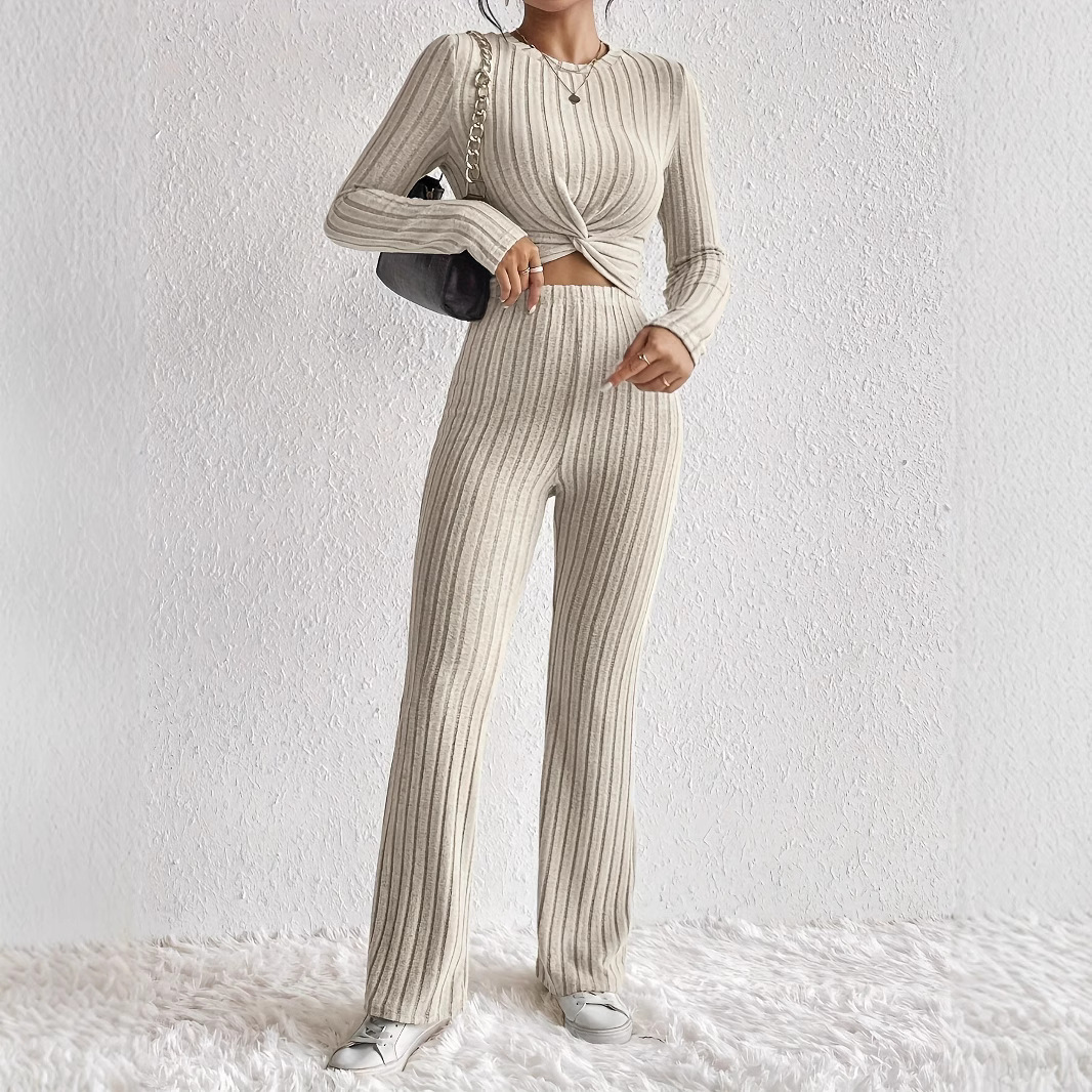 欧美跨境爆款休闲纯色两件套前部打结长袖短款上衣和修身裤套装월 판매량 409개재구매율 30%10,200원 * 수입시 예상 단가34.00元