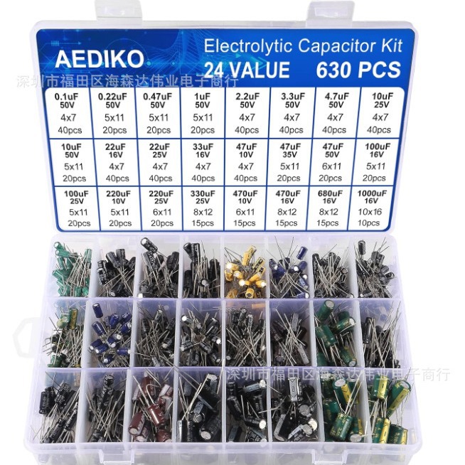 24种电解电容套装 630PCS 盒装 0.1UF-1000U铝电容 跨境爆款월 판매량 0개재구매율 0%7,140원 * 수입시 예상 단가23.80元