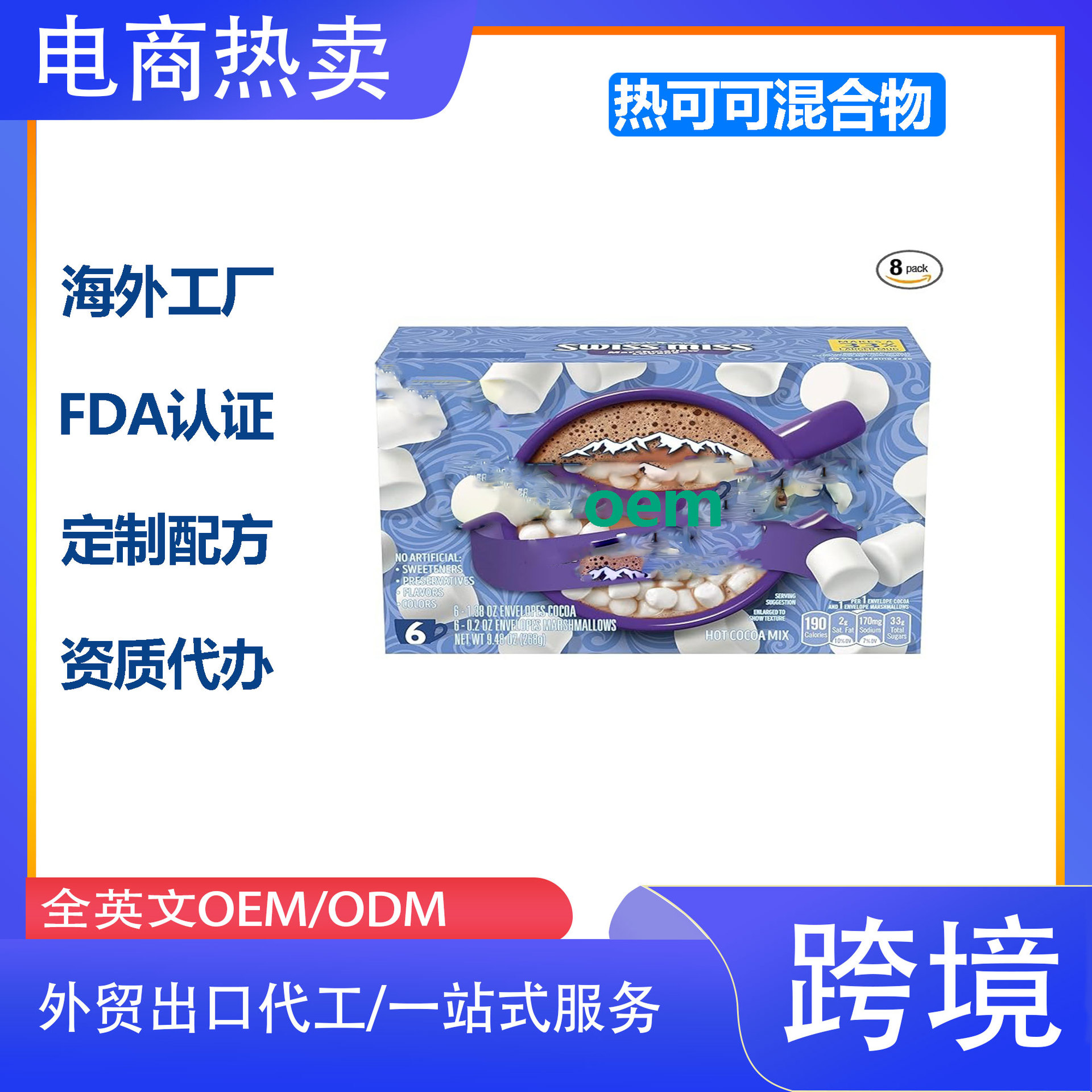 电商热卖Hot Cocoa Mix,热可可混合物,6个装 8.4盎司 8包월 판매량 0개재구매율 0%7,770원 * 수입시 예상 단가25.90元