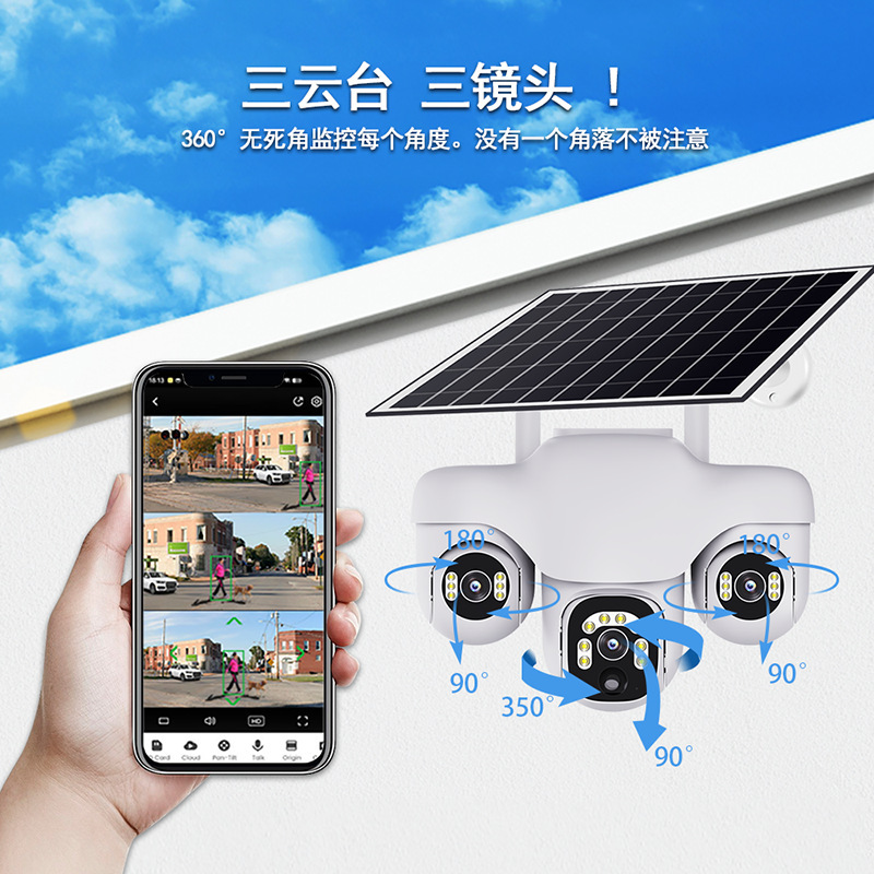 跨境爆款三画面摄像头户外360度无死角全彩夜视太阳能监控摄像头월 판매량 134개재구매율 20%55,500원 * 수입시 예상 단가185.00元