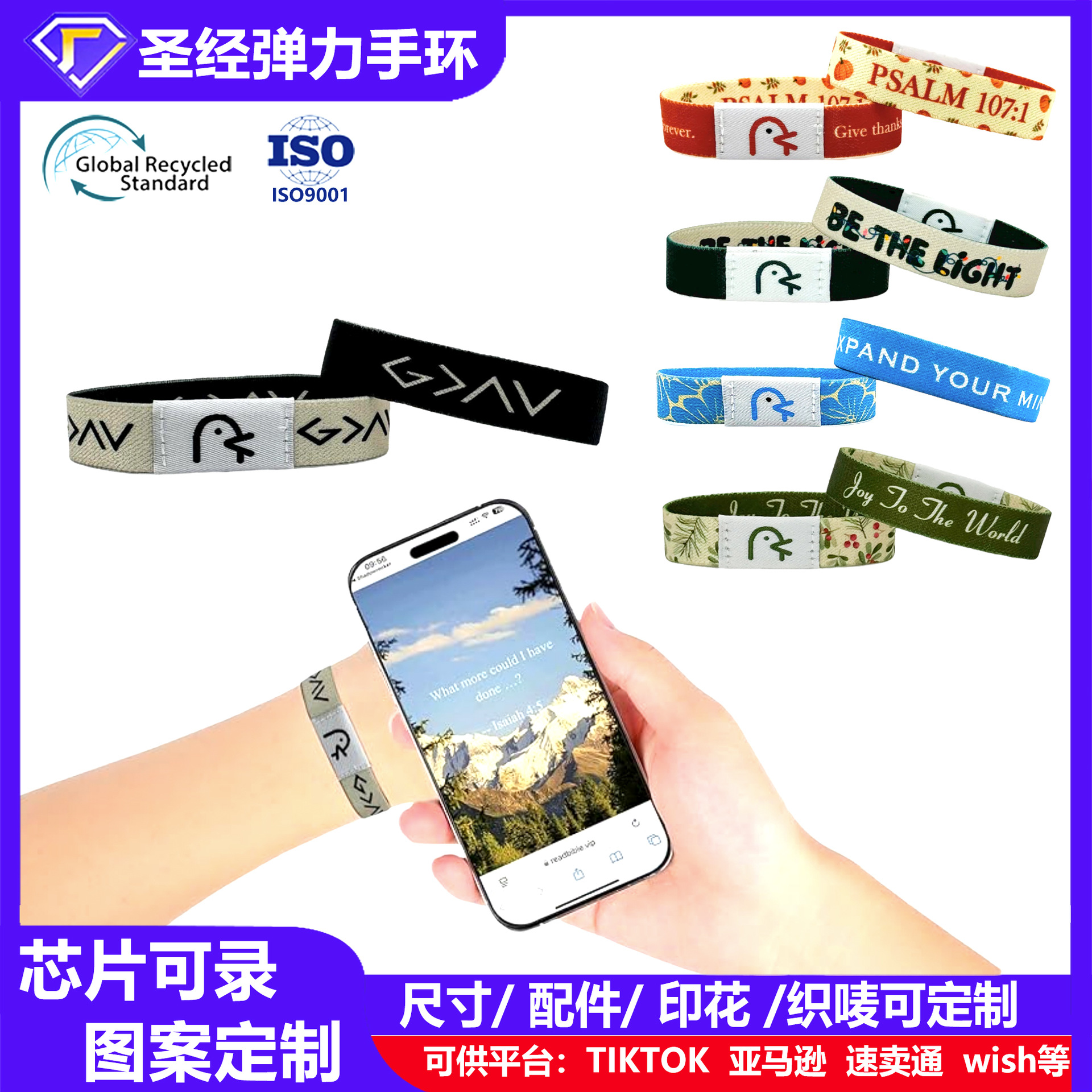 *跨境爆款编织nfc圣经手环腕热转印弹力手链运动赛事rfid弹性腕带월 판매량 16502개재구매율 0%570원 * 수입시 예상 단가1.90元