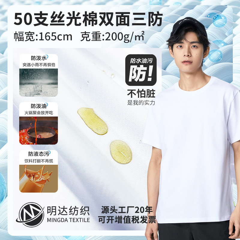 爆款三防白小T同款黑科技纯棉T恤面料 50S丝光棉防水防污短袖布料월 판매량 367개재구매율 0%2,970원 * 수입시 예상 단가9.90元