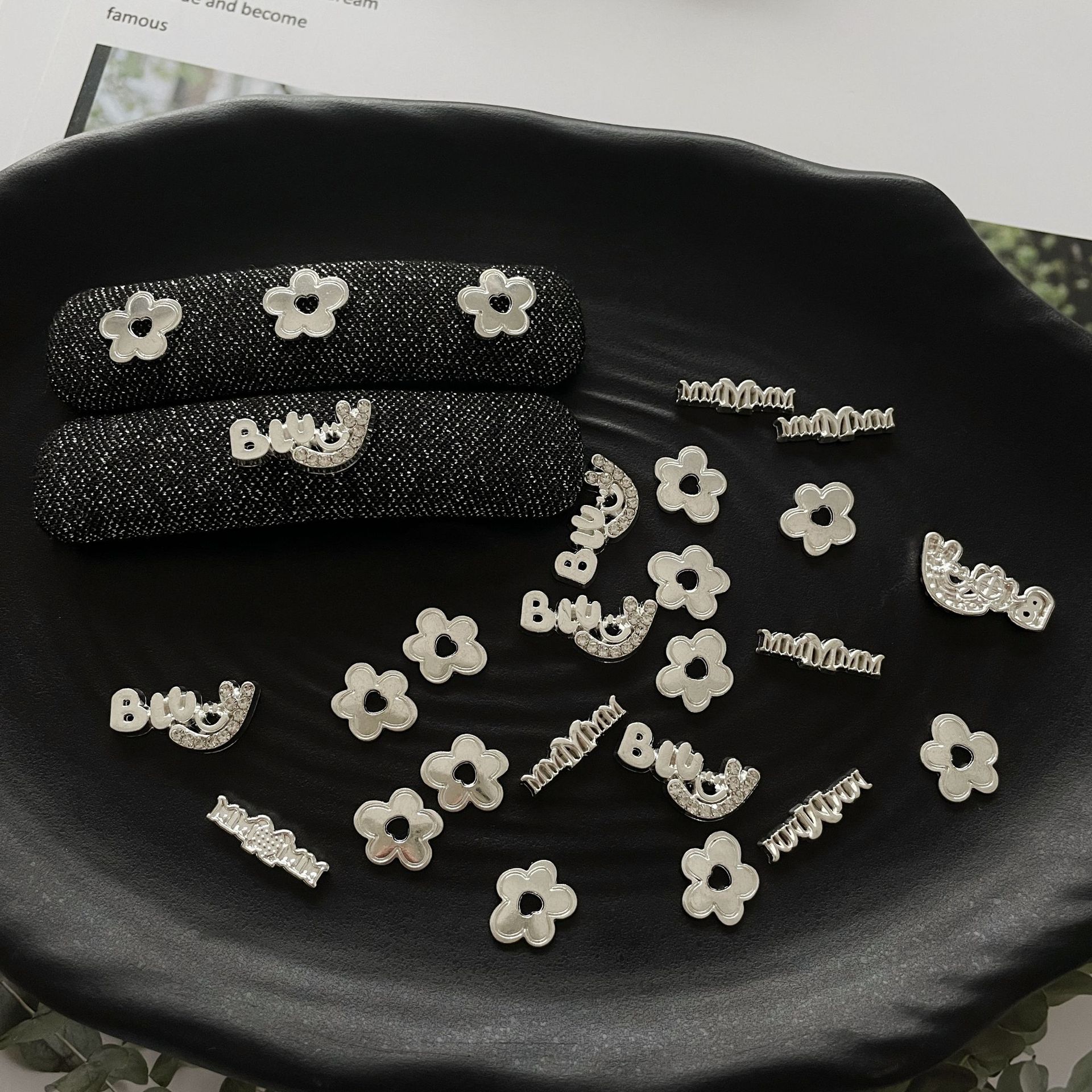 爆款可爱创意笑脸小花字母亮银合金贴片diy发卡头饰鞋包饰品配件월 판매량 15660개재구매율 13%81원 * 수입시 예상 단가0.28元0.27元